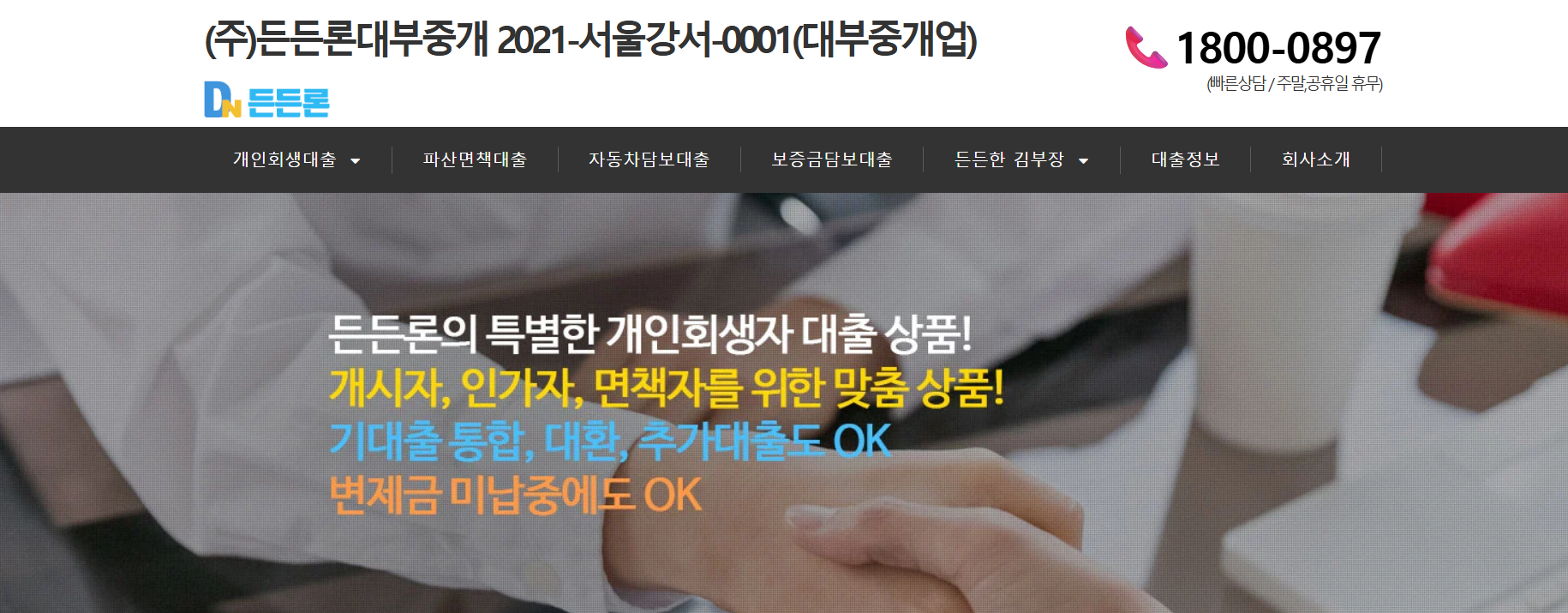 든든론은 개인회생 중이거나 인가를 받은 분들을 위한 대출 상품을 전문으로 취급하는 등록 대부중개 업체입니다.