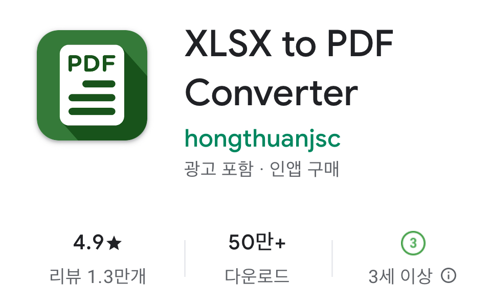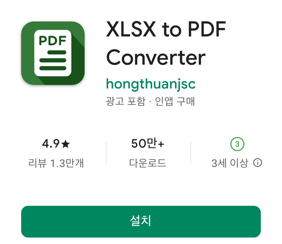 • 구글 플레이스토어에서 XLSX to PDF Converter 검색