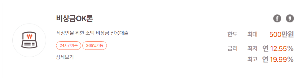 - 대출 금리: 연 12.55% ~ 19.99% (고정금리)