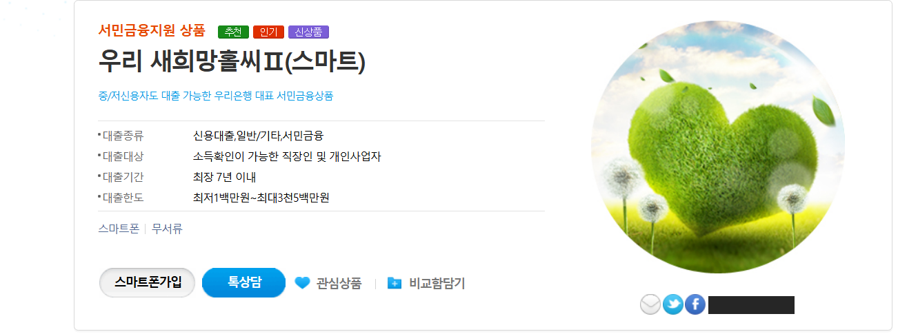 우리은행 새희망홀씨2 대출 조건 한도 금리 신청방법 서류
