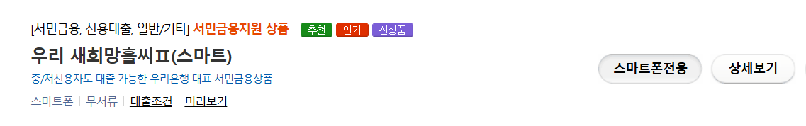 2. 우리은행 새희망홀씨2 대출 조건 대상