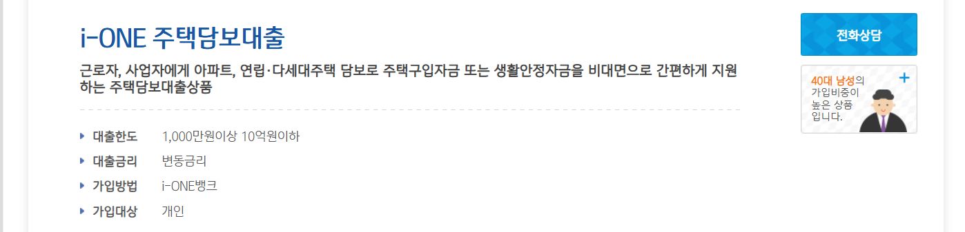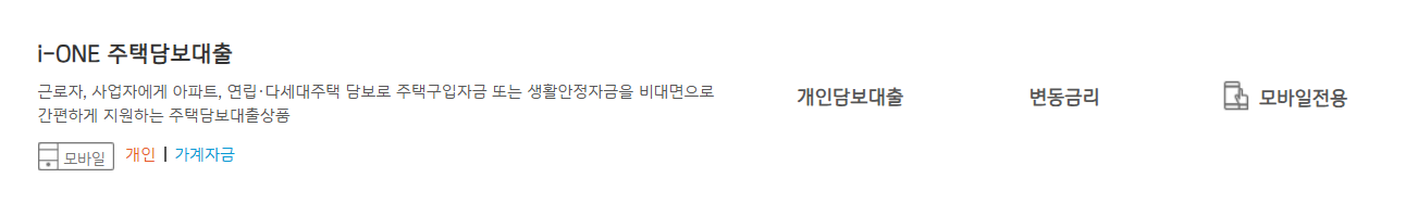 기업은행의 i-ONE 주택담보대출은 근로자 또는 사업자를 대상으로, 아파트 및 연립·다세대주택을 담보로 주택구입자금 또는 생활안정자금을 비대면 방식으로 간편하게 지원하는 상품입니다.
