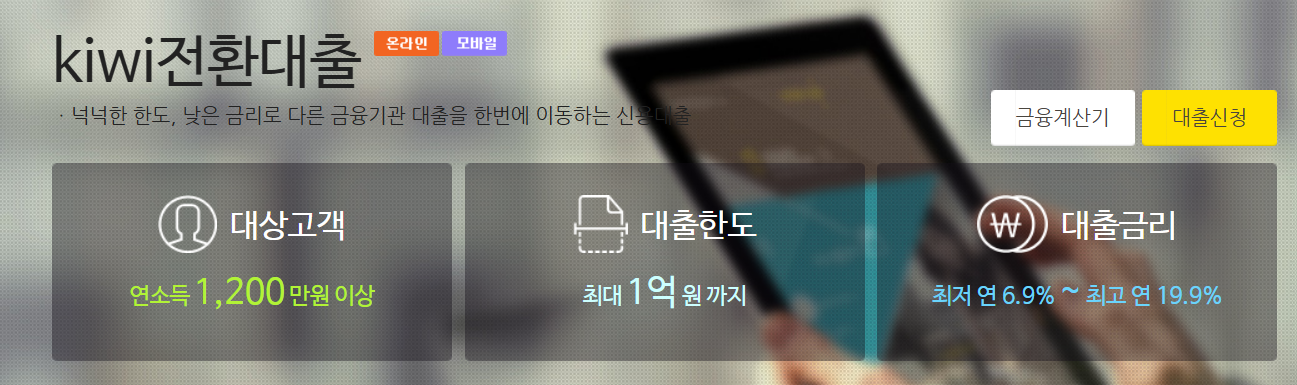 kb저축은행 대환대출 kiwi전환대출 조건 한도 금리 신청방법 후기