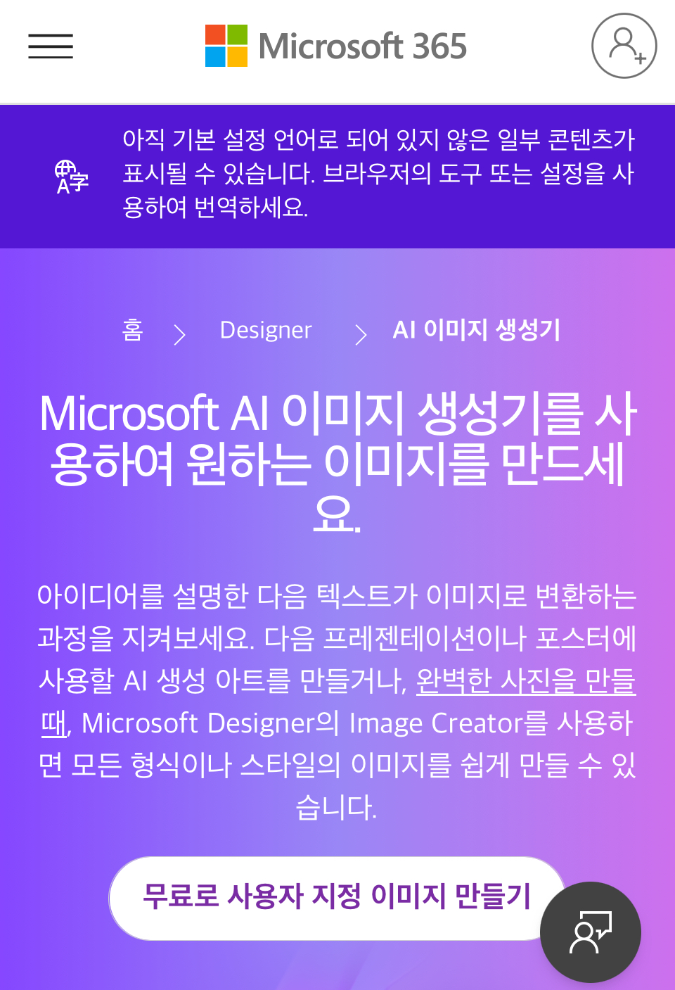 • Microsoft Designer / Image Creator: 마이크로소프트 계정으로 접속하여 간단한 이미지 생성 가능.